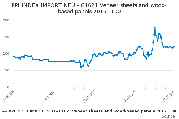 Download this time seriesPPI INDEX IMPORT NEU - C1621 Veneer sheets and wood-based panels 2015=100