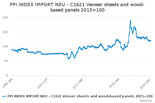 Download this time seriesPPI INDEX IMPORT NEU - C1621 Veneer sheets and wood-based panels 2015=100