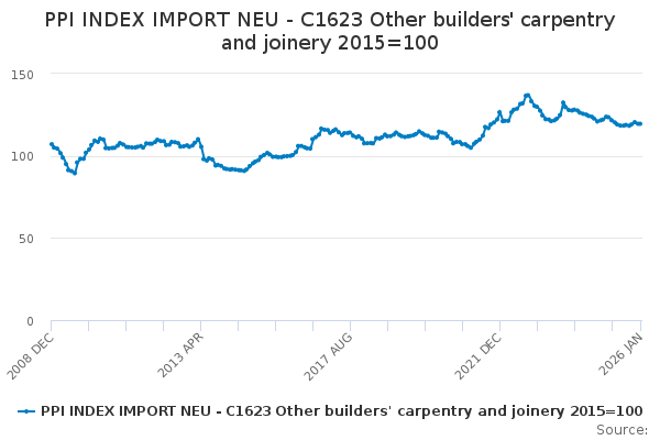 Download this time seriesPPI INDEX IMPORT NEU - C1623 Other builders' carpentry and joinery 2015=100