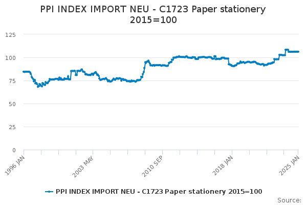 Download this time seriesPPI INDEX IMPORT NEU - C1723 Paper stationery 2015=100