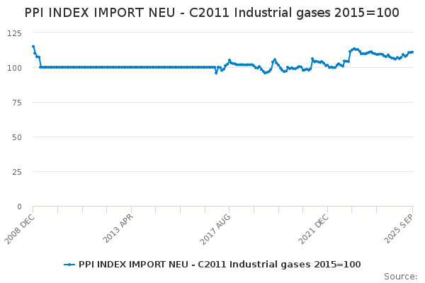 Download this time seriesPPI INDEX IMPORT NEU - C2011 Industrial gases 2015=100