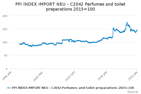 Download this time seriesPPI INDEX IMPORT NEU - C2042 Perfumes and toilet preparations 2015=100