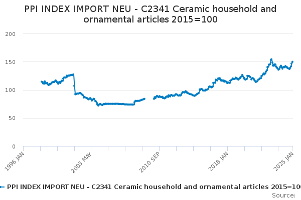 Download this time seriesPPI INDEX IMPORT NEU - C2341 Ceramic household and ornamental articles 2015=100