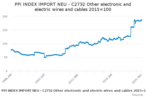 Download this time seriesPPI INDEX IMPORT NEU - C2732 Other electronic and electric wires and cables 2015=100