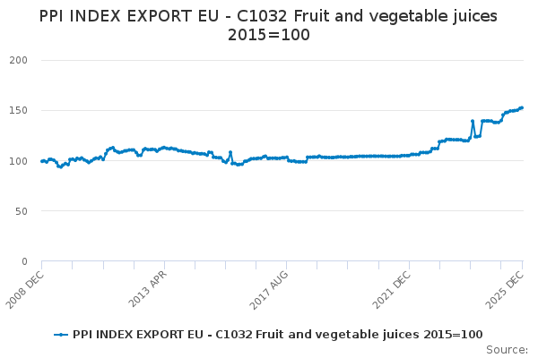 Download this time seriesPPI INDEX EXPORT EU - C1032 Fruit and vegetable juices 2015=100