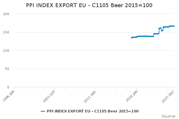 Download this time seriesPPI INDEX EXPORT EU - C1105 Beer 2015=100