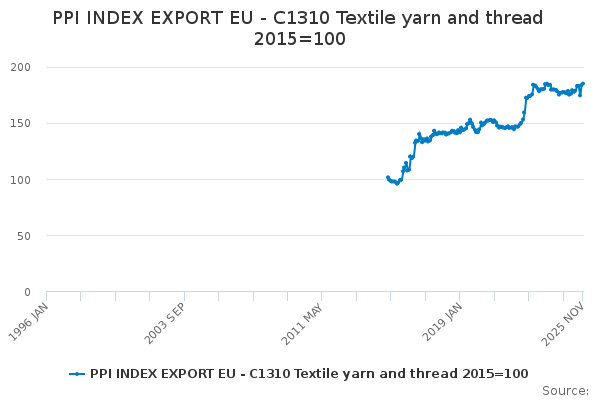 Download this time seriesPPI INDEX EXPORT EU - C1310 Textile yarn and thread 2015=100
