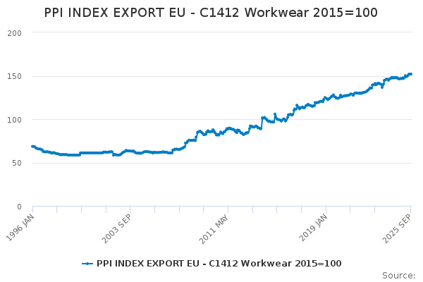 Download this time seriesPPI INDEX EXPORT EU - C1412 Workwear 2015=100