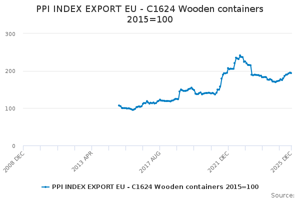 Download this time seriesPPI INDEX EXPORT EU - C1624 Wooden containers 2015=100