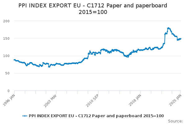 Download this time seriesPPI INDEX EXPORT EU - C1712 Paper and paperboard 2015=100