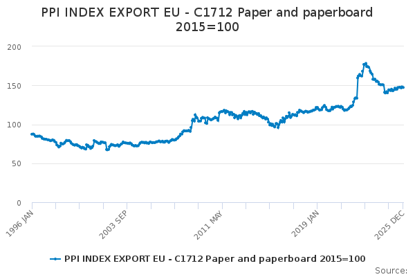 Download this time seriesPPI INDEX EXPORT EU - C1712 Paper and paperboard 2015=100