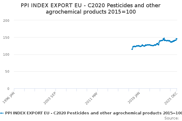 Download this time seriesPPI INDEX EXPORT EU - C2020 Pesticides and other agrochemical products 2015=100