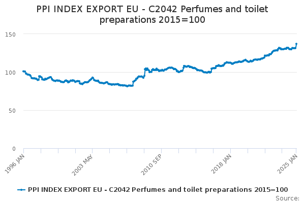 Download this time seriesPPI INDEX EXPORT EU - C2042 Perfumes and toilet preparations 2015=100