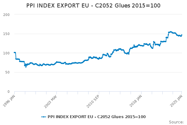 Download this time seriesPPI INDEX EXPORT EU - C2052 Glues 2015=100