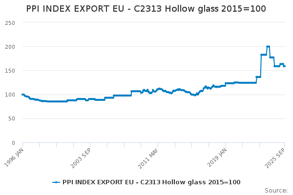 Download this time seriesPPI INDEX EXPORT EU - C2313 Hollow glass 2015=100