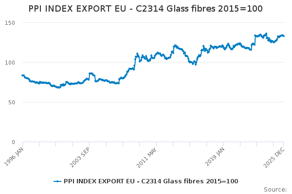 Download this time seriesPPI INDEX EXPORT EU - C2314 Glass fibres 2015=100