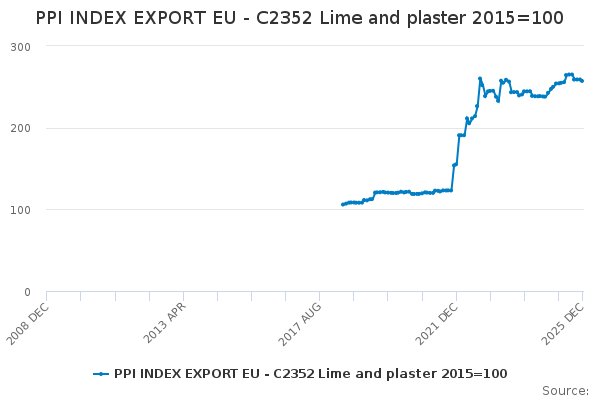 Download this time seriesPPI INDEX EXPORT EU - C2352 Lime and plaster 2015=100