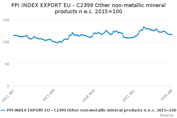 Download this time seriesPPI INDEX EXPORT EU - C2399 Other non-metallic mineral products n.e.c. 2015=100