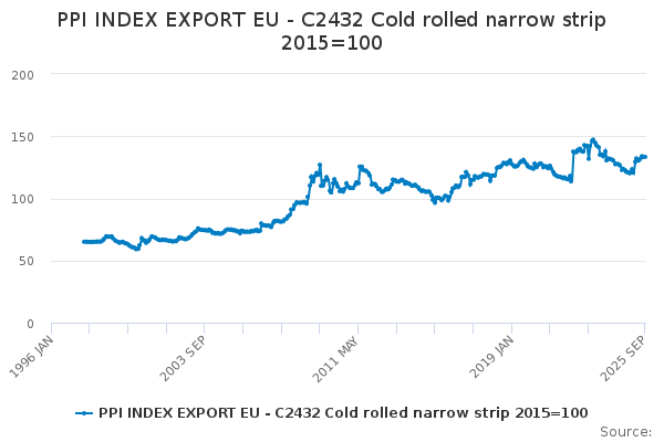 Download this time seriesPPI INDEX EXPORT EU - C2432 Cold rolled narrow strip 2015=100