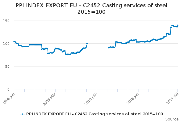 Download this time seriesPPI INDEX EXPORT EU - C2452 Casting services of steel 2015=100