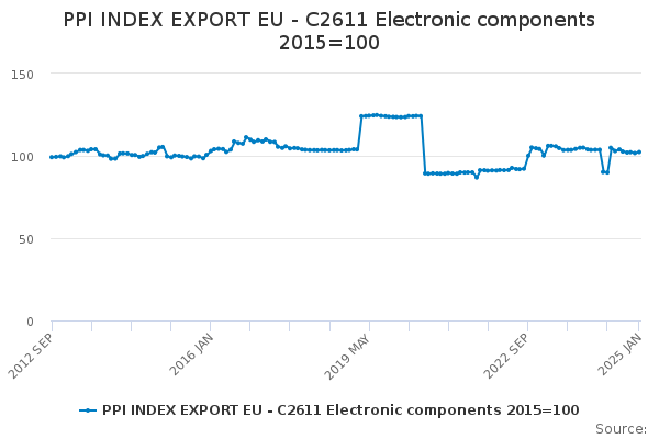 Download this time seriesPPI INDEX EXPORT EU - C2611 Electronic components 2015=100