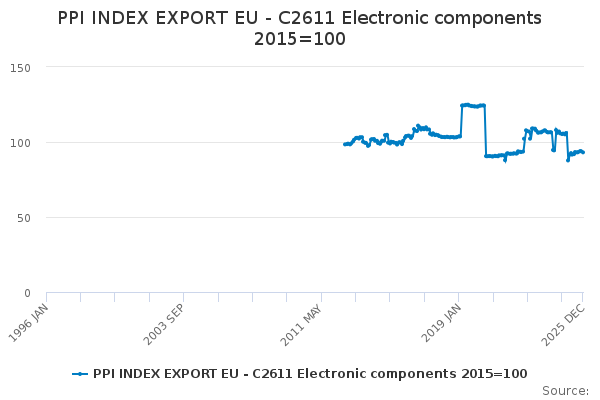 Download this time seriesPPI INDEX EXPORT EU - C2611 Electronic components 2015=100