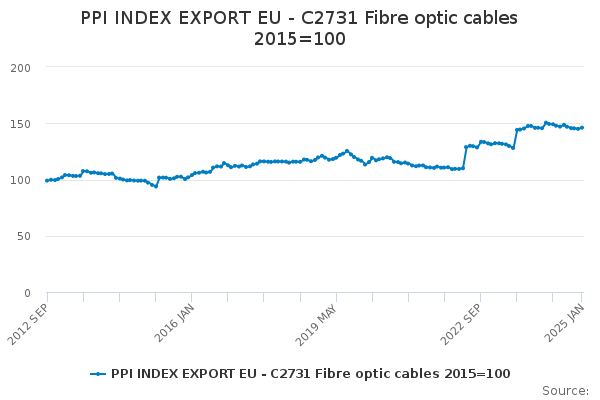 Download this time seriesPPI INDEX EXPORT EU - C2731 Fibre optic cables 2015=100
