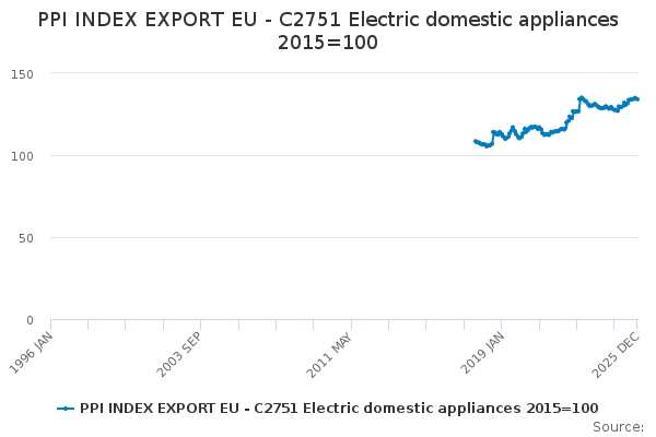 Download this time seriesPPI INDEX EXPORT EU - C2751 Electric domestic appliances 2015=100