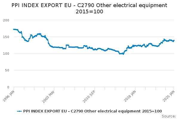 Download this time seriesPPI INDEX EXPORT EU - C2790 Other electrical equipment 2015=100