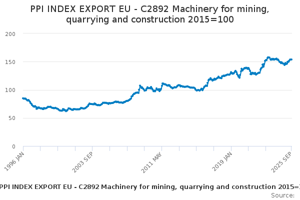 Download this time seriesPPI INDEX EXPORT EU - C2892 Machinery for mining, quarrying and construction 2015=100
