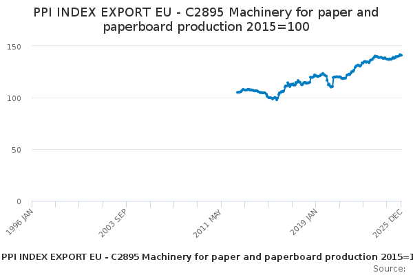 Download this time seriesPPI INDEX EXPORT EU - C2895 Machinery for paper and paperboard production 2015=100