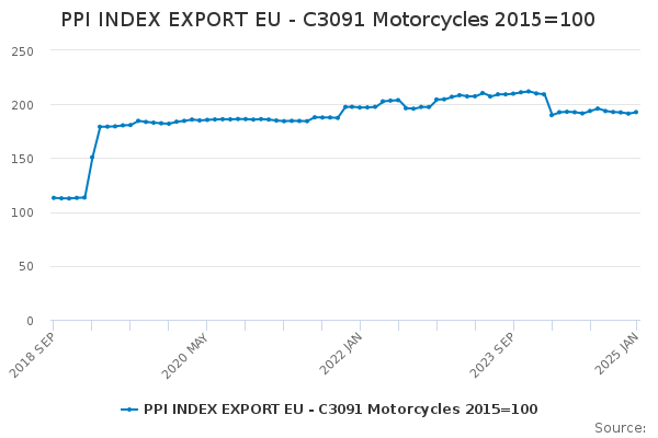 Download this time seriesPPI INDEX EXPORT EU - C3091 Motorcycles 2015=100