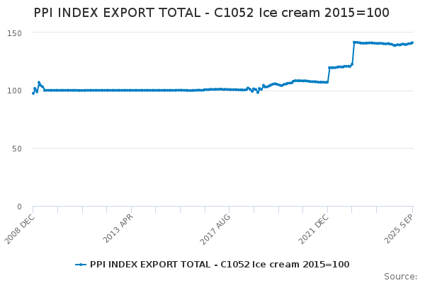 Download this time seriesPPI INDEX EXPORT TOTAL - C1052 Ice cream 2015=100