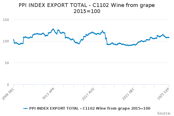 Download this time seriesPPI INDEX EXPORT TOTAL - C1102 Wine from grape 2015=100