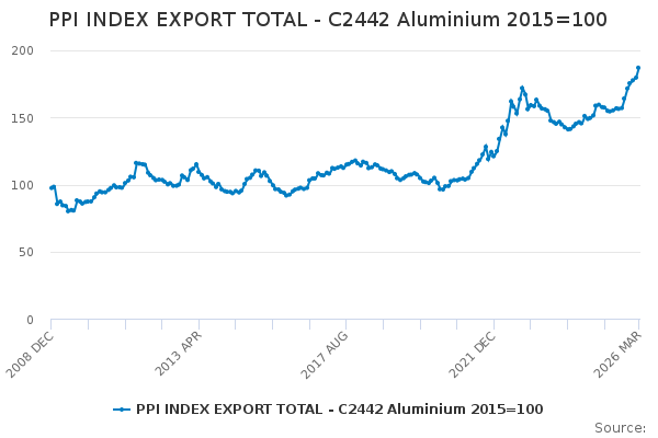 Download this time seriesPPI INDEX EXPORT TOTAL - C2442 Aluminium 2015=100
