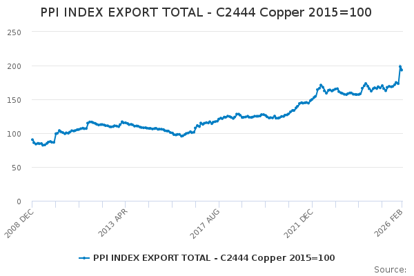Download this time seriesPPI INDEX EXPORT TOTAL - C2444 Copper 2015=100
