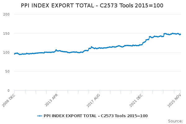 Download this time seriesPPI INDEX EXPORT TOTAL - C2573 Tools 2015=100
