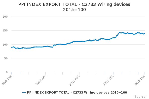 Download this time seriesPPI INDEX EXPORT TOTAL - C2733 Wiring devices 2015=100