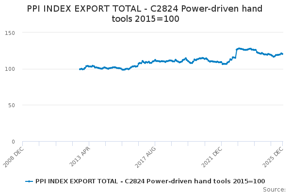 Download this time seriesPPI INDEX EXPORT TOTAL - C2824 Power-driven hand tools 2015=100