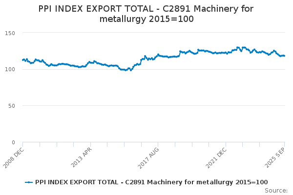 Download this time seriesPPI INDEX EXPORT TOTAL - C2891 Machinery for metallurgy 2015=100