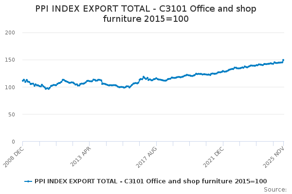 Download this time seriesPPI INDEX EXPORT TOTAL - C3101 Office and shop furniture 2015=100