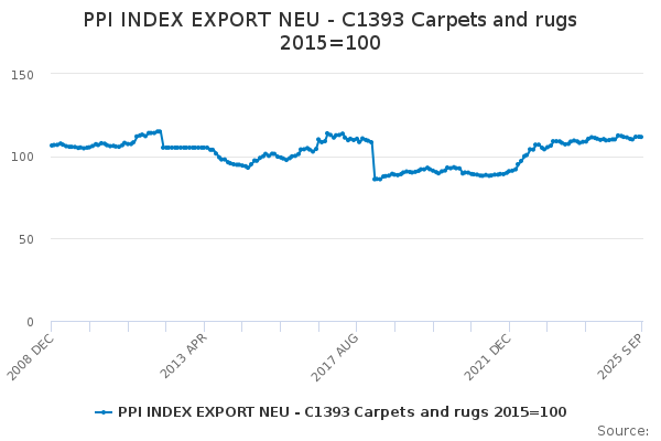 Download this time seriesPPI INDEX EXPORT NEU - C1393 Carpets and rugs 2015=100