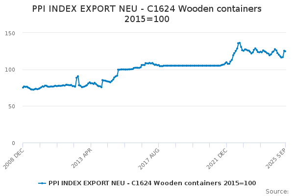 Download this time seriesPPI INDEX EXPORT NEU - C1624 Wooden containers 2015=100