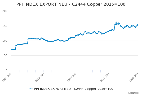 Download this time seriesPPI INDEX EXPORT NEU - C2444 Copper 2015=100