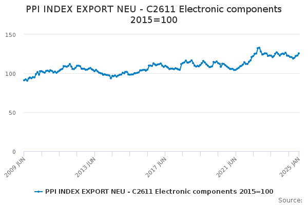 Download this time seriesPPI INDEX EXPORT NEU - C2611 Electronic components 2015=100
