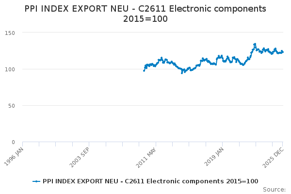 Download this time seriesPPI INDEX EXPORT NEU - C2611 Electronic components 2015=100