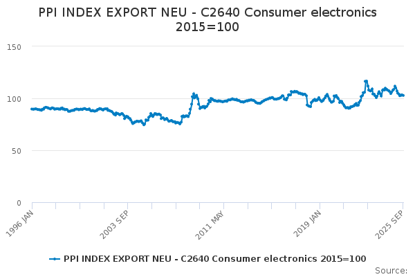 Download this time seriesPPI INDEX EXPORT NEU - C2640 Consumer electronics 2015=100