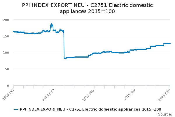 Download this time seriesPPI INDEX EXPORT NEU - C2751 Electric domestic appliances 2015=100