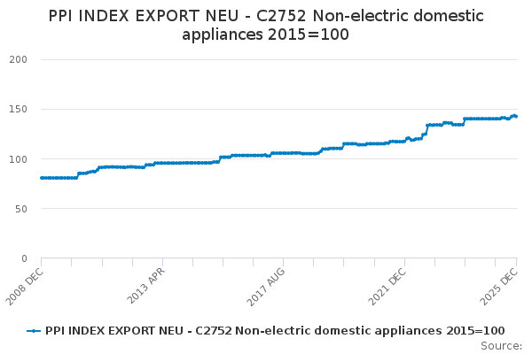 Download this time seriesPPI INDEX EXPORT NEU - C2752 Non-electric domestic appliances 2015=100