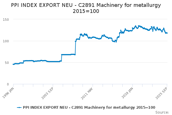 Download this time seriesPPI INDEX EXPORT NEU - C2891 Machinery for metallurgy 2015=100
